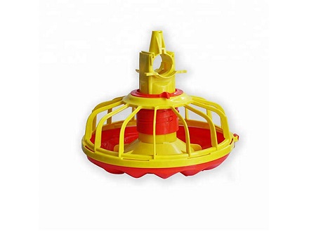 XGZ poultry feeder, also called pan feeder, has some special design which makes the poultry feeder function well: removable cap for ease of installation, easy and positive feed depth adjustment, choice of ergonomic grills, three large feed windows, anti-rake fins, feed pan and grills form a large feed saver lip, choice of pan diameters and depth profiles, deep “V” bottom nestles into the litter during brooding, which promote feed savings and increased pan thickness in primary wear area.